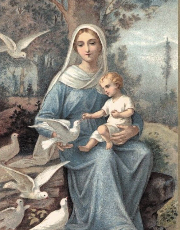 Médaille Vierge à l'enfant et la colombe - Or blanc 18ct