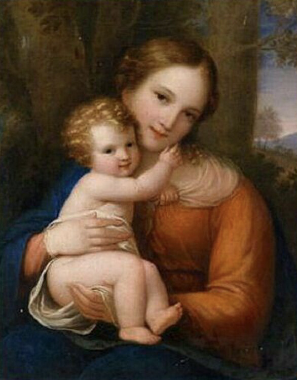 235 €On retrouve sur cette médaille de baptême le thème universel et ancestral de la maternité investi depuis des siècles par l’icônographie chrétienne de la Vierge Marie.