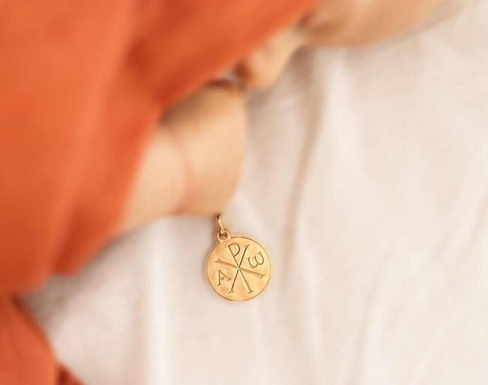 La médaille Chrisme symbolise la foi et la lumière du Christ, unissant tradition et spiritualité.