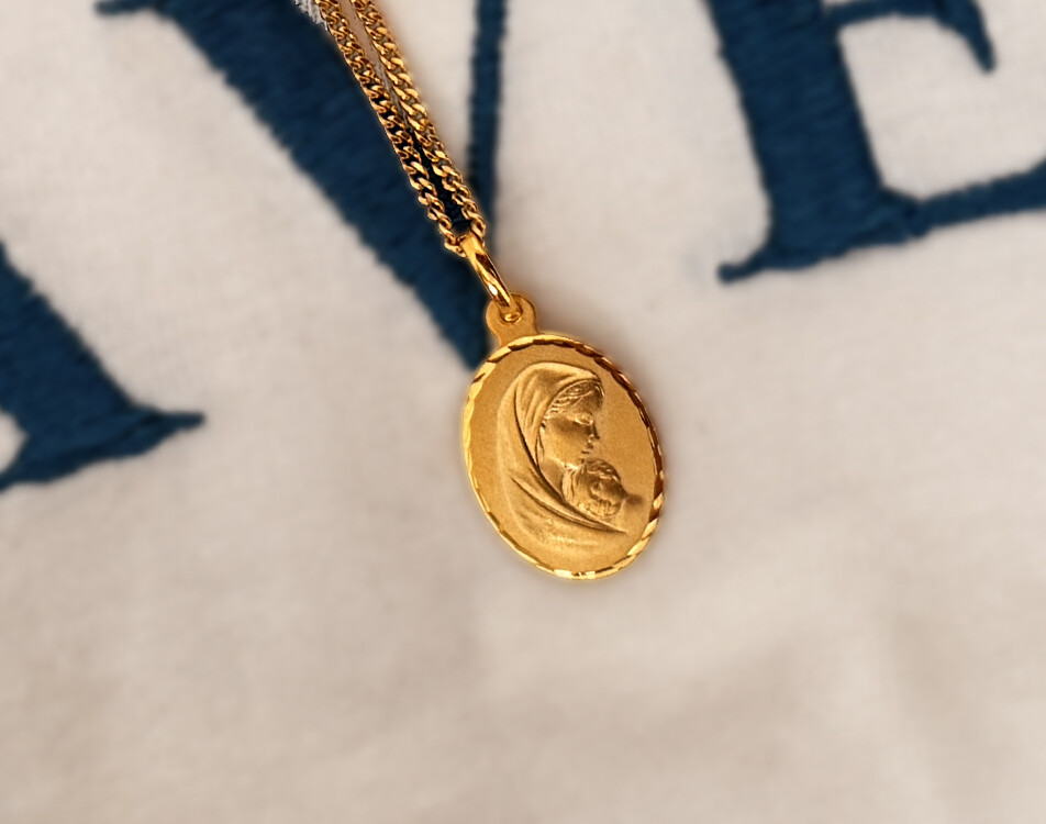 Médaille Vierge à l'enfant protectrice - Or jaune 18ct